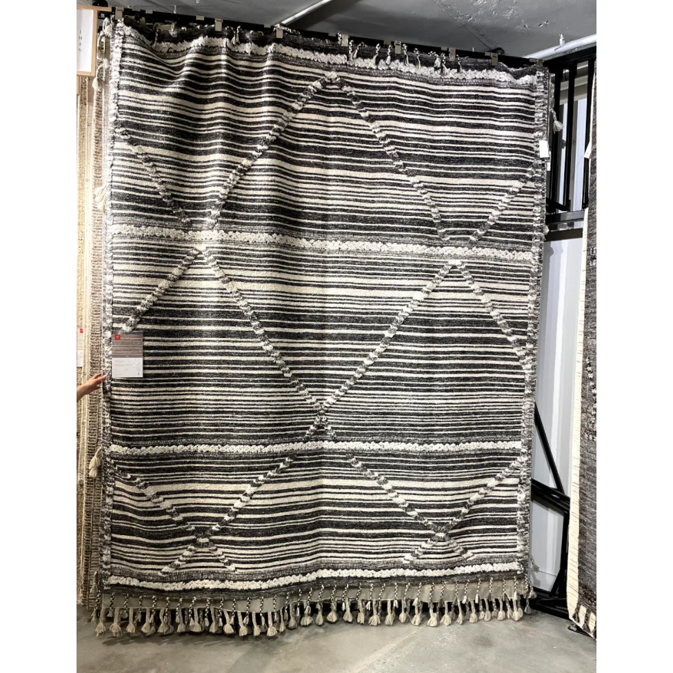 A new take on Moroccan style rugs, the Iman Collection is hand-knotted of 100% wool pile by skilled artisans in India. The surface features linear and braided details, creating tonal variations that make each piece unique. Plus, each design is finished with playful fringe.