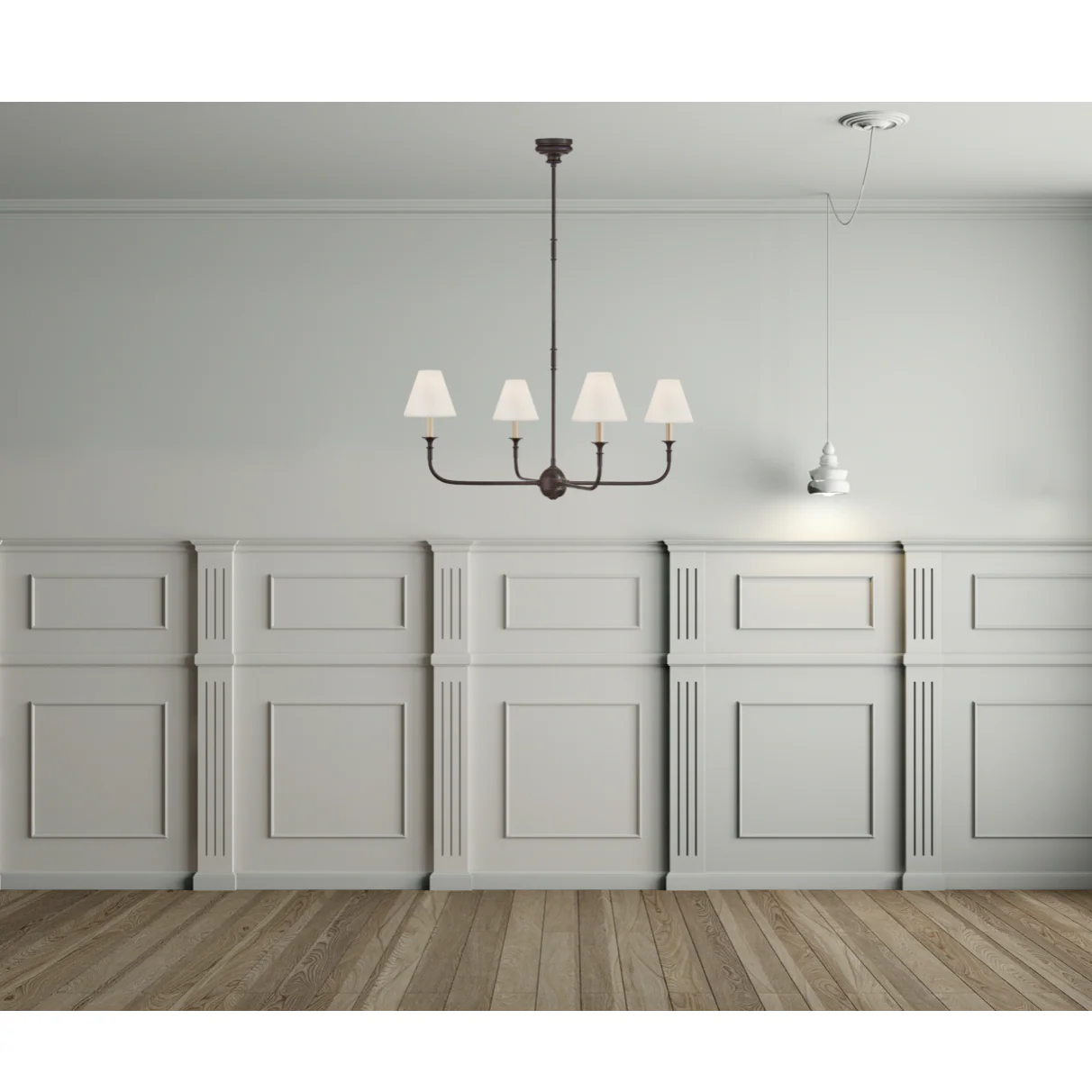 We love the thin arms of this Piaf Large Chandelier from Visual Comfort. The linen shades brings a warm, classic look to any dining room, living room, or other large space.Â
