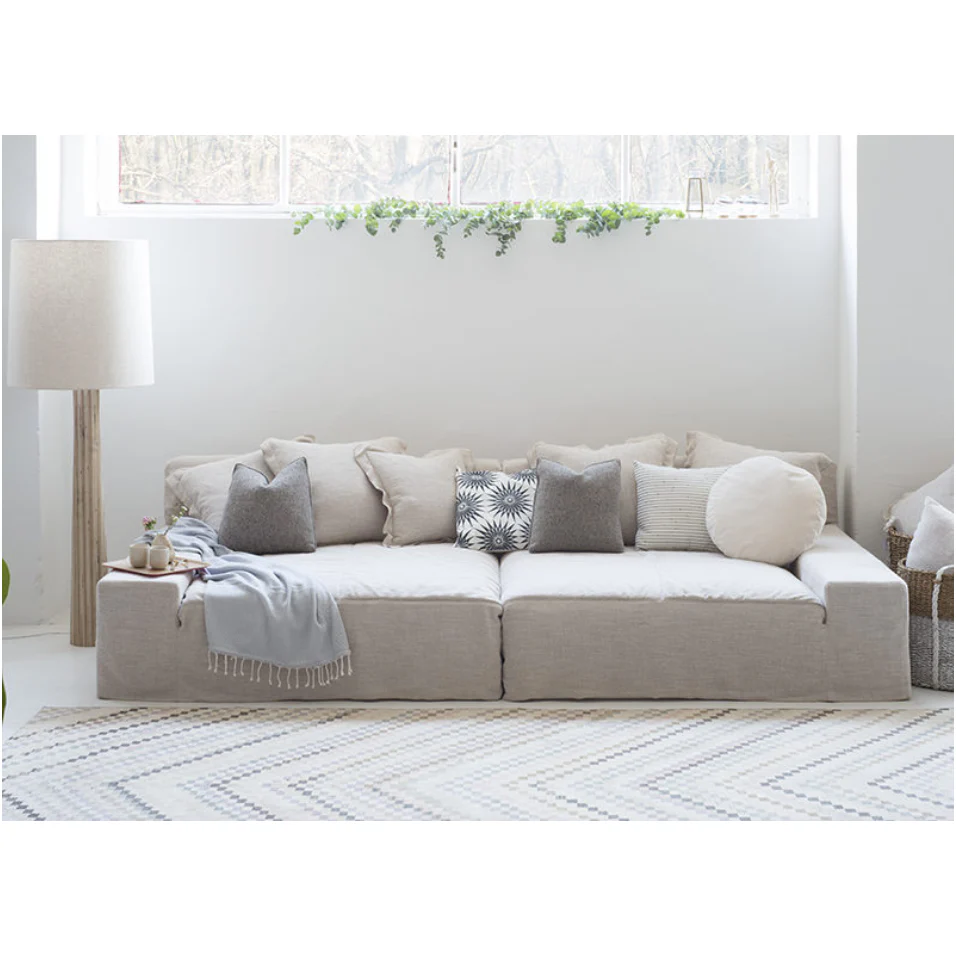 The ultimate low, cozy sofa. We would put this Esme Sofa Family from Verellen in the family room, living room or movie theater. The juxtaposition of a juicy, miniature-spring filled down-wrapped cushion and firm back is ultra-comfortable.